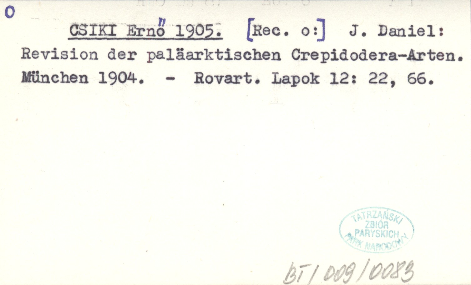 CSIKI Ernő 1905 [Rec. o:] J. Daniel: Revision der paläarktischen Crepidodera-Arten. Münich 1904.