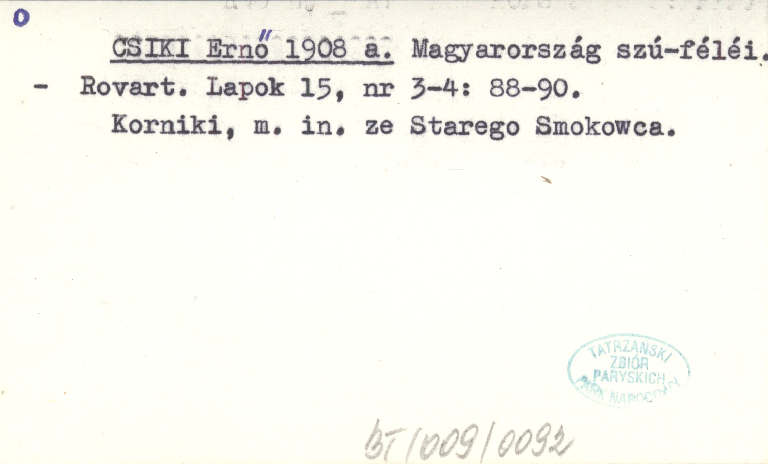 Rovart. Lapok, 15, nr 3-4: 88-90. Korniki, m. in. ze Starego Smokowca.