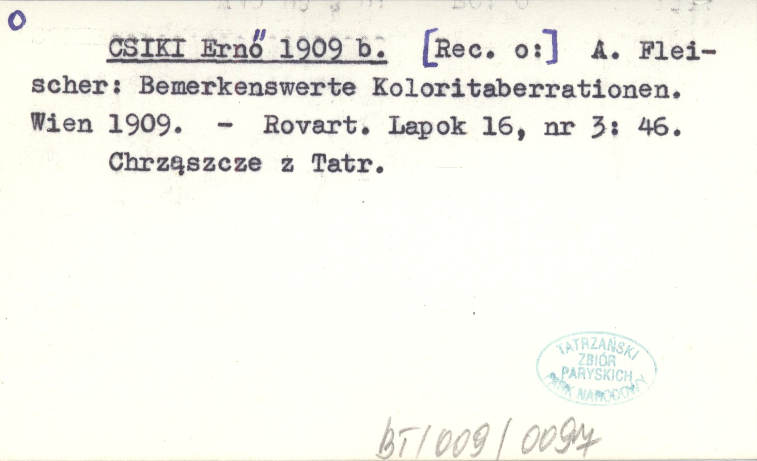 CSIKI Ernő 1909 b [Rec. o:] A. Fleischer: Bemerkenswerte Koloritaberrationen. Wien 1909.