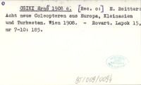 CSIKI Ernő 1908 c [Rec. o:] E. Reitter: Acht neue Coleopteren aus Europa, Kleinasien und Turkestan. Wien 1908.
