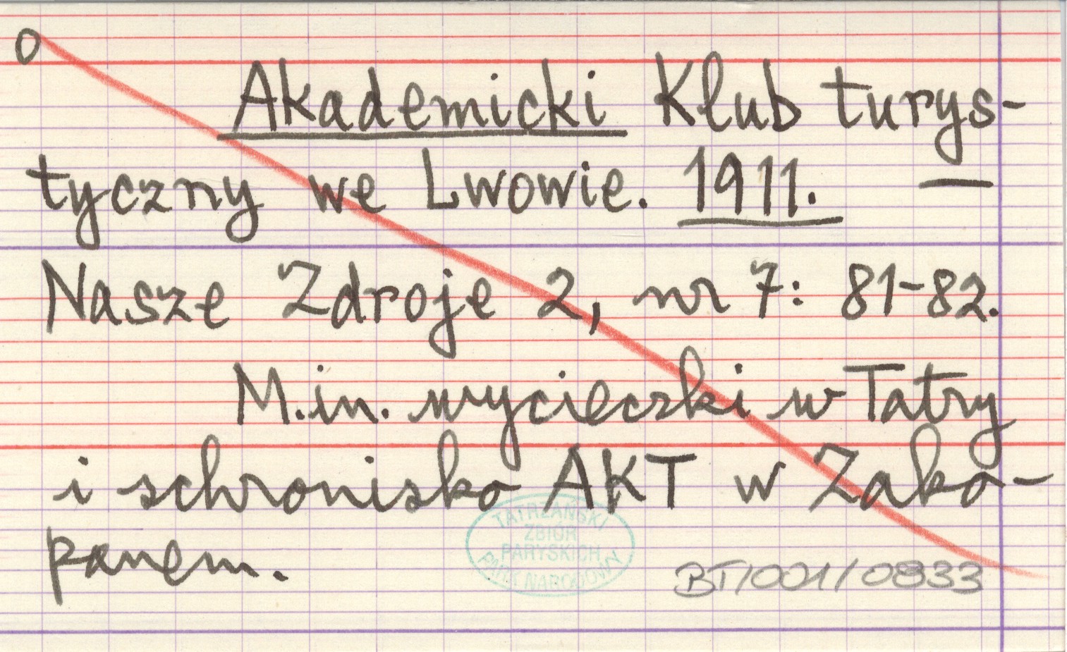 Nasze Zdroje, 2, nr 7: 81-82. M. in. wycieczki w Tatry i schronisko AKT w Zakopanem.