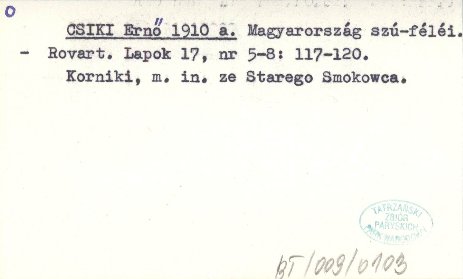 Rovart. Lapok, 17, nr 5-8: 117-120. Korniki, m. in. ze Starego Smokowca.