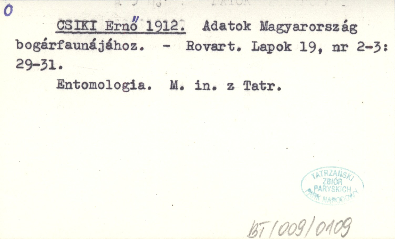 CSIKI Ernő 1912 Adatok Magyarország bogárfaunájához.