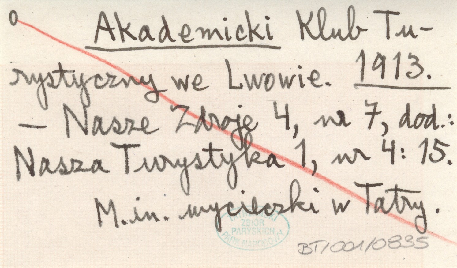 Nasza Turystyka, 1, nr 4: 15 (dod. do: Nasze Zdroje 4, nr 7). M. in. wycieczki w Tatry.