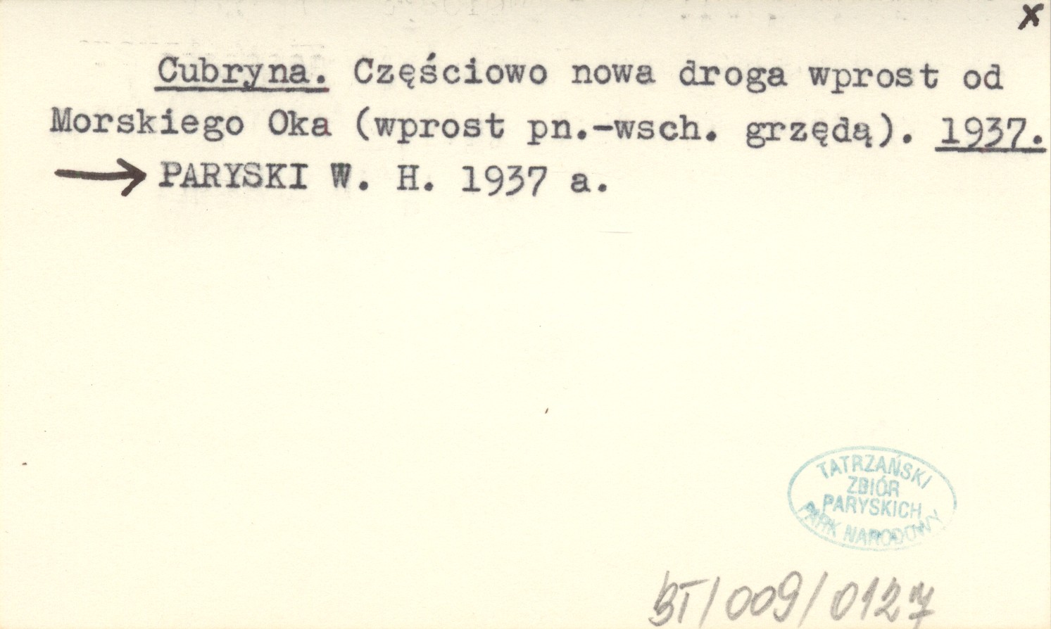 Cubryna. Częściowo nowa droga wprost od Morskiego Oka (wprost północno-wschodnią grzędą). 1937