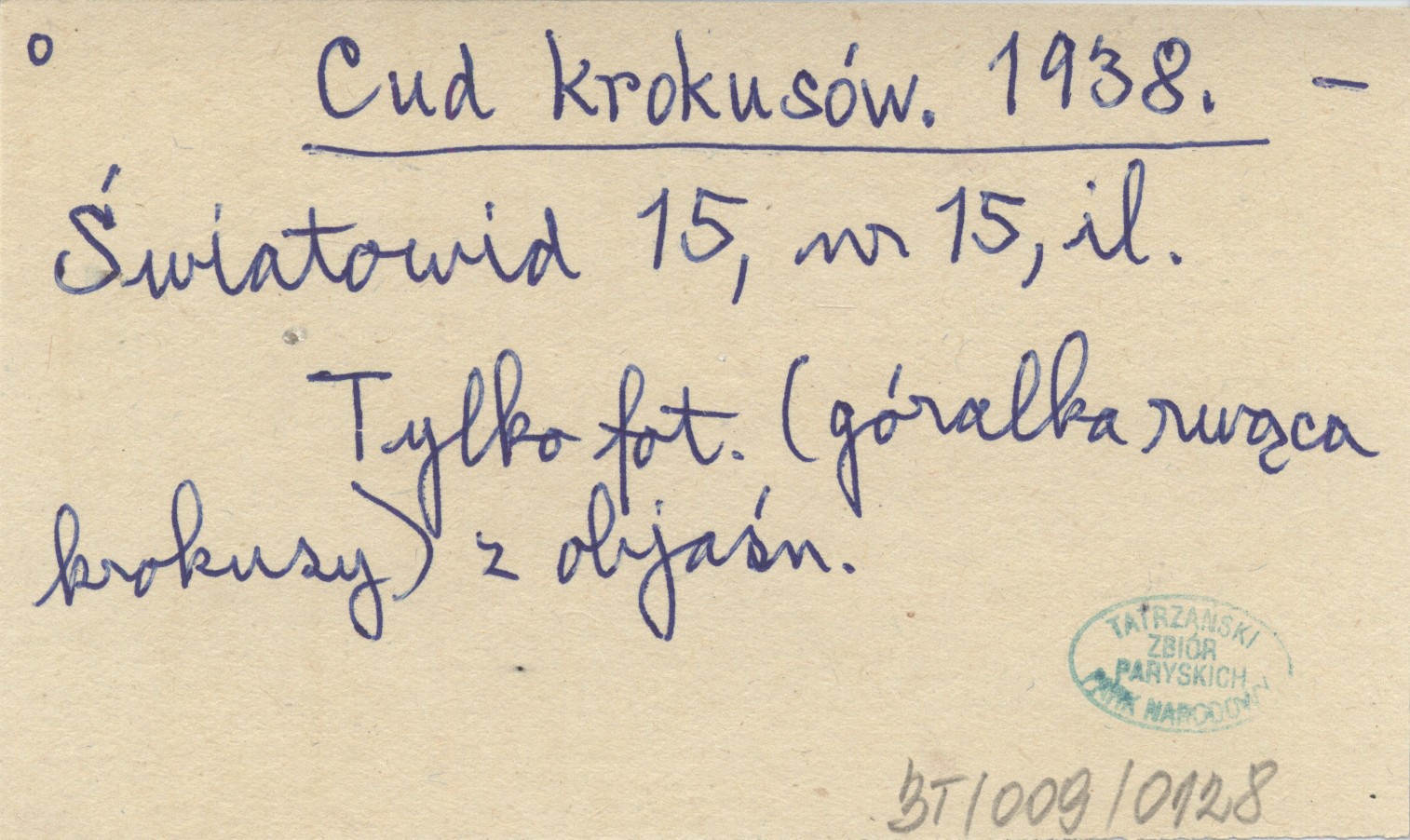 Światowid, 15, nr 15, il. Tylko fotografia (góralka rwąca krokusy) z objaśnieniem.