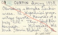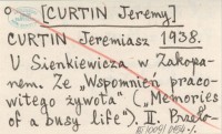 CURTIN Jeremy 1938 Odwiedziny u Henryka Sienkiewicza. Ze "Wspomnień pracowitego żywota. Memories of a busy life". Tłum.: Józef Birkenmajer.