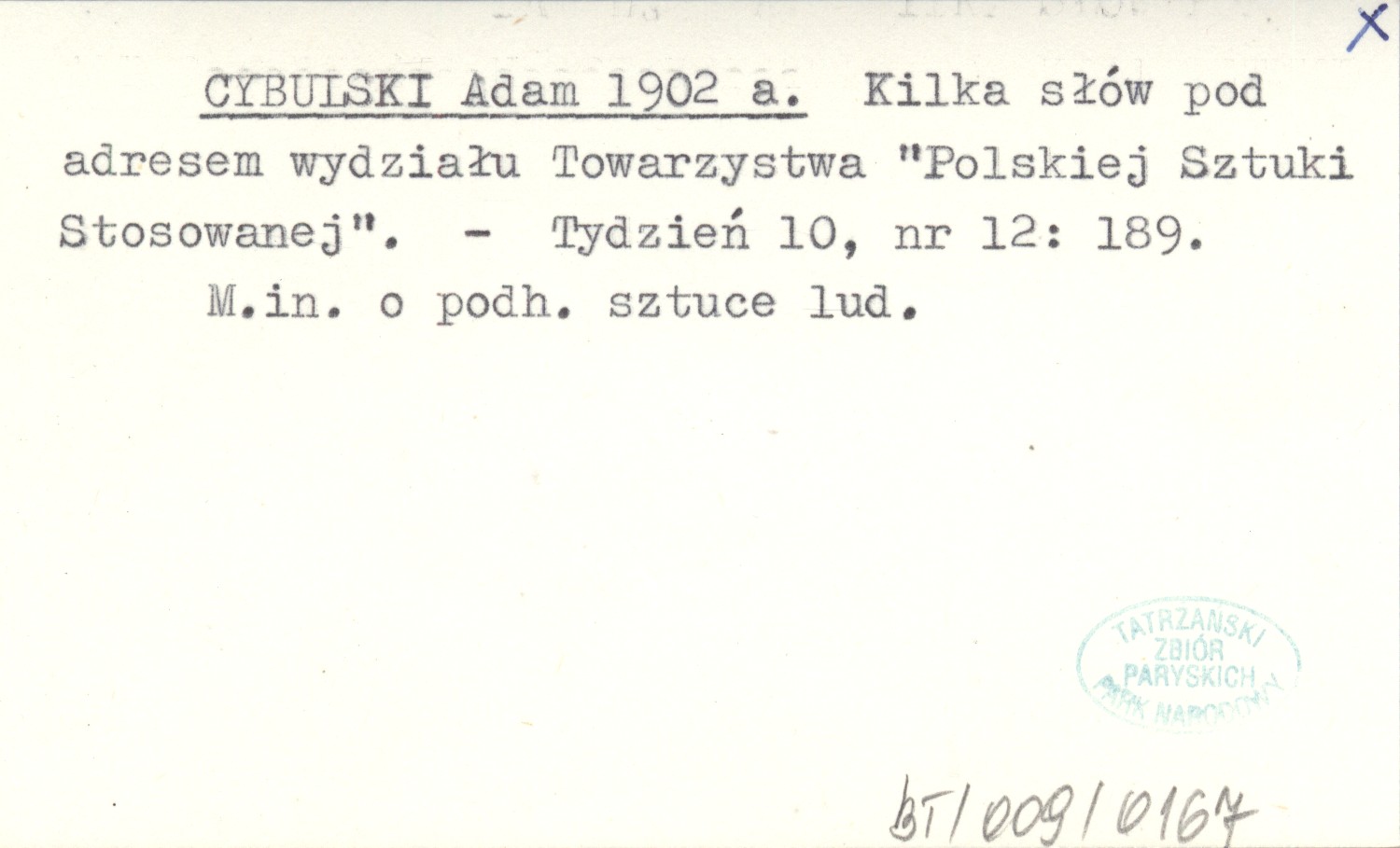 CYBULSKI Adam 1902 a Kilka słów pod adresem wydziału Towarzystwa "Polskiej Sztuki Stosowanej".