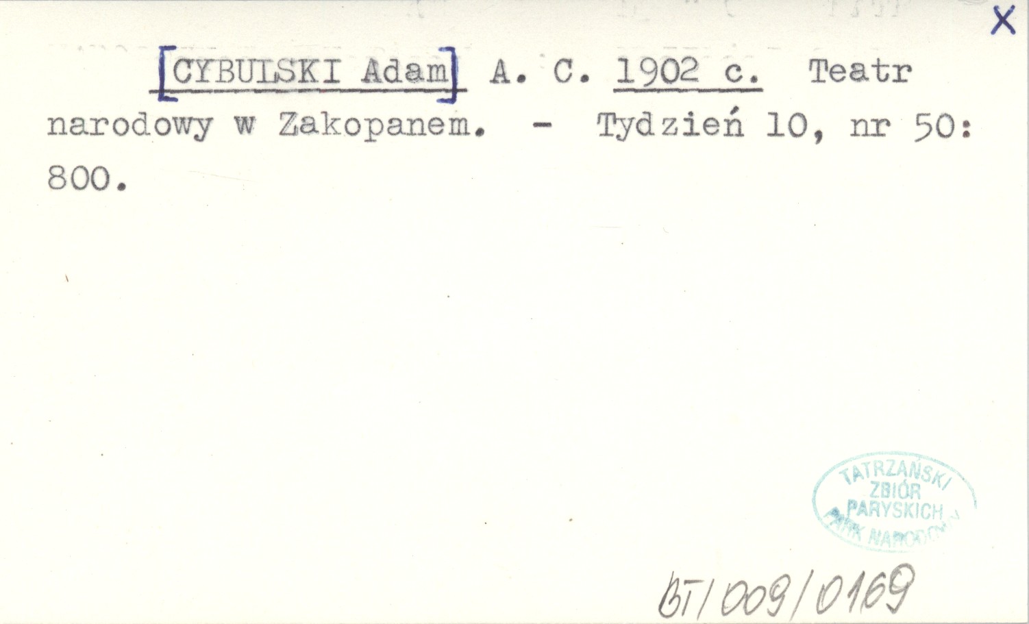 A. C. [CYBULSKI Adam] 1902 c Teatr narodowy w Zakopanem.