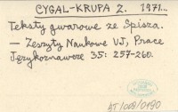 CYGAL-KRUPA Z. 1971... Teksty gwarowe ze Spisza.
