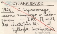 CYJANKIEWICZ 1926 Z tegorocznego sezonu zimowego w Zakopanem.