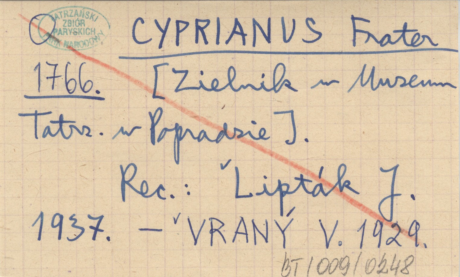 CYPRIANUS Frater 1766 [Zielnik w Muzeum Tatrzańskim w Popradzie].