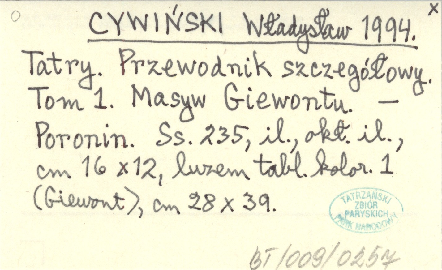CYWIŃSKI Władysław 1994 Tatry. Przewodnik szczegółowy. Tom 1. Masyw Giewontu.