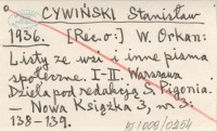CYWIŃSKI Stanisław 1936 [Rec. o:] W. Orkan: Listy ze wsi i inne pisma społeczne. I-II. Warszawa. Dzieła pod redakcją S. Pigonia.