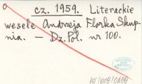 cz. 1959 Literackie wesele Andrzeja Florka Skupnia.