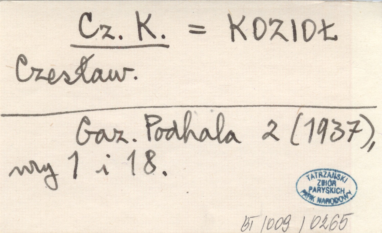 Cz. K. KOZIOŁ Czesław Gazeta Podhala 2 (1937), nr 1 i 18.