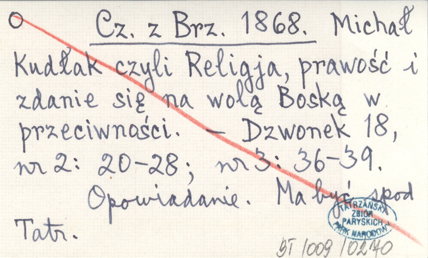 Cz. z Brz. 1868 Michał Kudłak czyli Religja, prawość i zdanie się na wolę Boską w przeciwności.