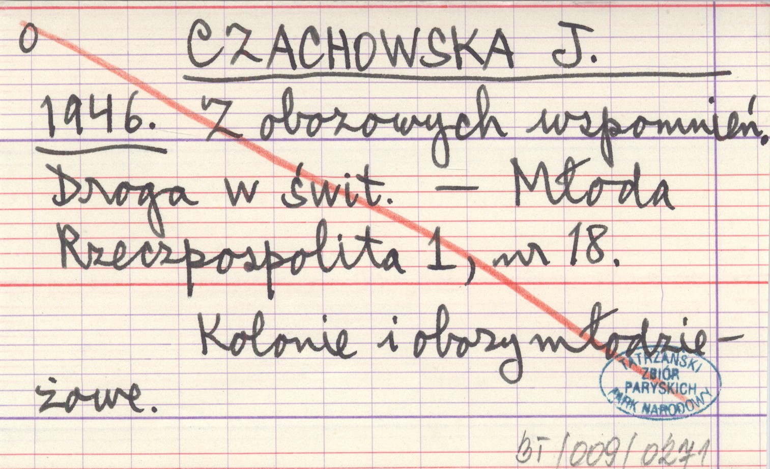 CZACHOWSKA J. 1946 Z obozowych wspomnień. Droga w świt.