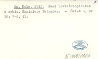 Cz. Kals. 1913 Nasi powieściopisarze o sobie. Kazimierz Tetmajer.