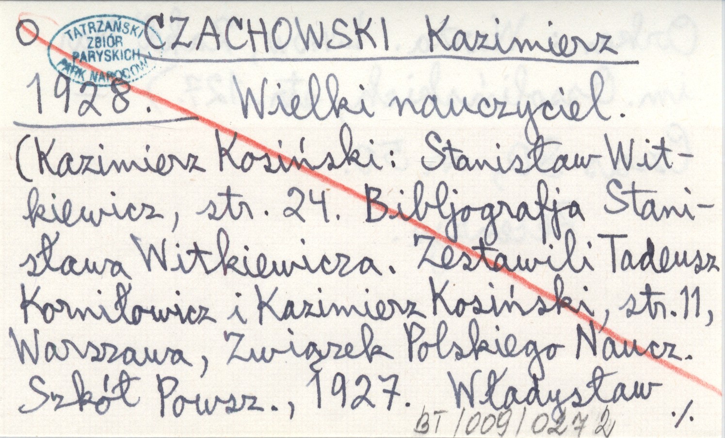 CZACHOWSKI Kazimierz 1928 Wielki nauczyciel. (Kazimierz Kosiński: Stanisław Witkiewicz, s. 24. Bibljografia Stanisława Witkiewicza. Zestawili Tadeusz Korniłowicz i Kazimierz Kosiński, s. 11, Warszawa, Związek Polskiego Nauczycielstwa Szkół Powszechnych, 1927. Władysław Orkan: Warta. Lwów, Zakład Narodowy im. Ossolińskich, s. 127).