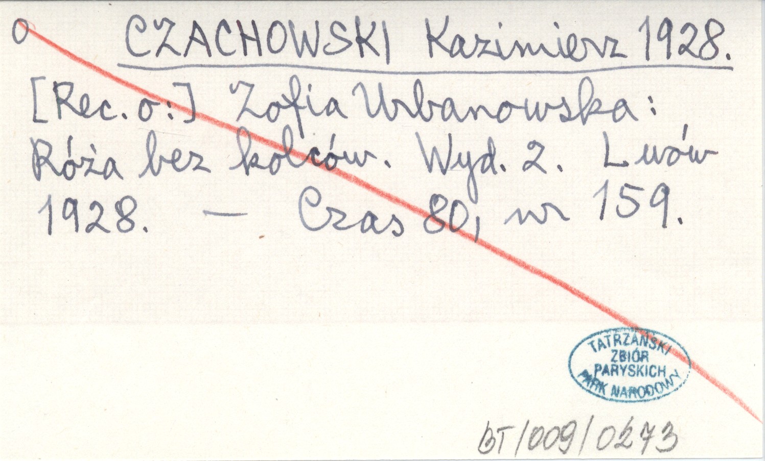CZACHOWSKI Kazimierz 1928 Zofia Urbanowska: Róża bez kolców. Wyd. 2. Lwów 1928.