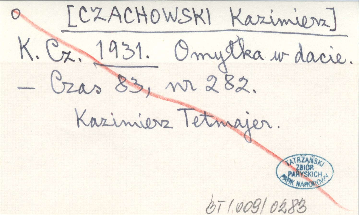 K. Cz. [CZACHOWSKI Kazimierz] 1931 Omyłka w dacie.