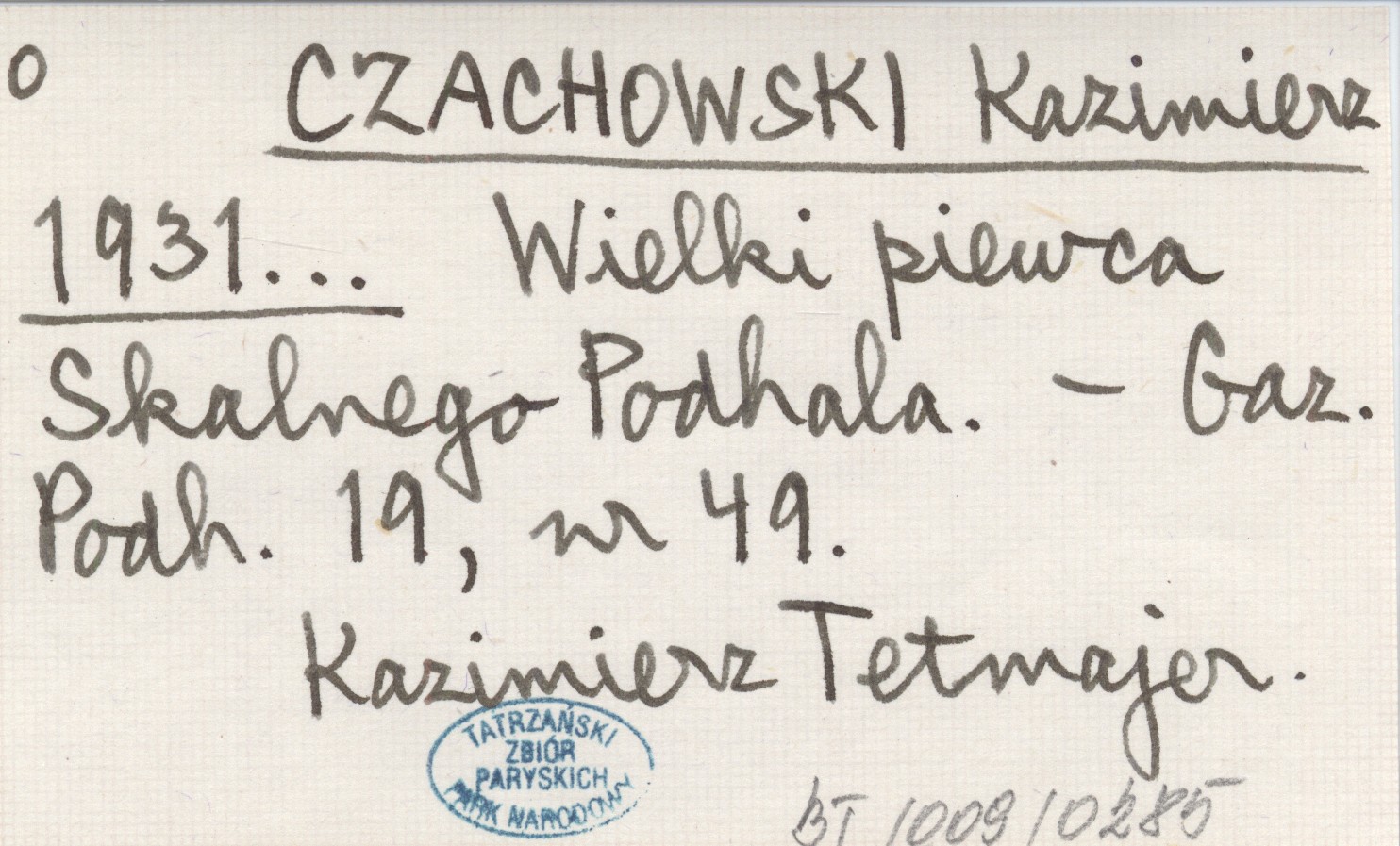 Projekt Digitalizacja fiszek z Bibliografią Tatr i Podtatrza Witolda Henryka Paryskiego jest finansowany ze środków Ministra Kultury i Dziedzictwa Narodowego oraz Tatrzańskiego Parku Narodowego.