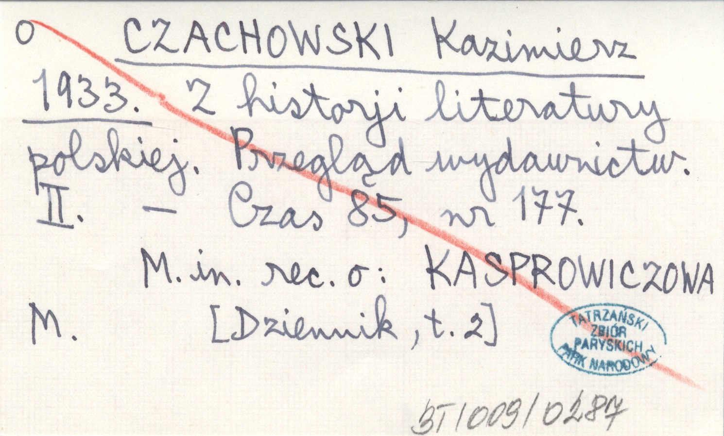 CZACHOWSKI Kazimierz 1933 Z historji literatury polskiej. Przegląd wydawnictw. II.