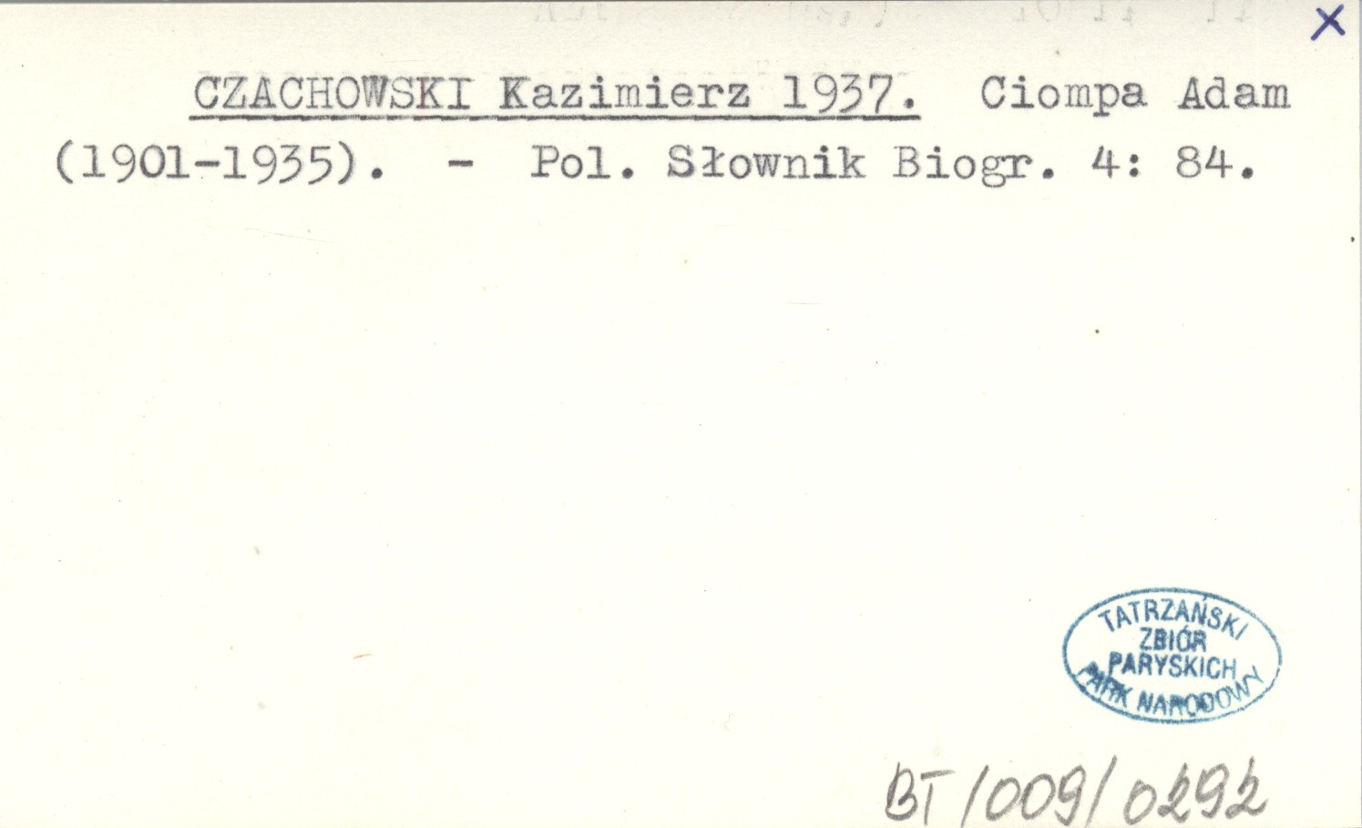 CZACHOWSKI Kazimierz 1937 Ciompa Adam (1901-1935).