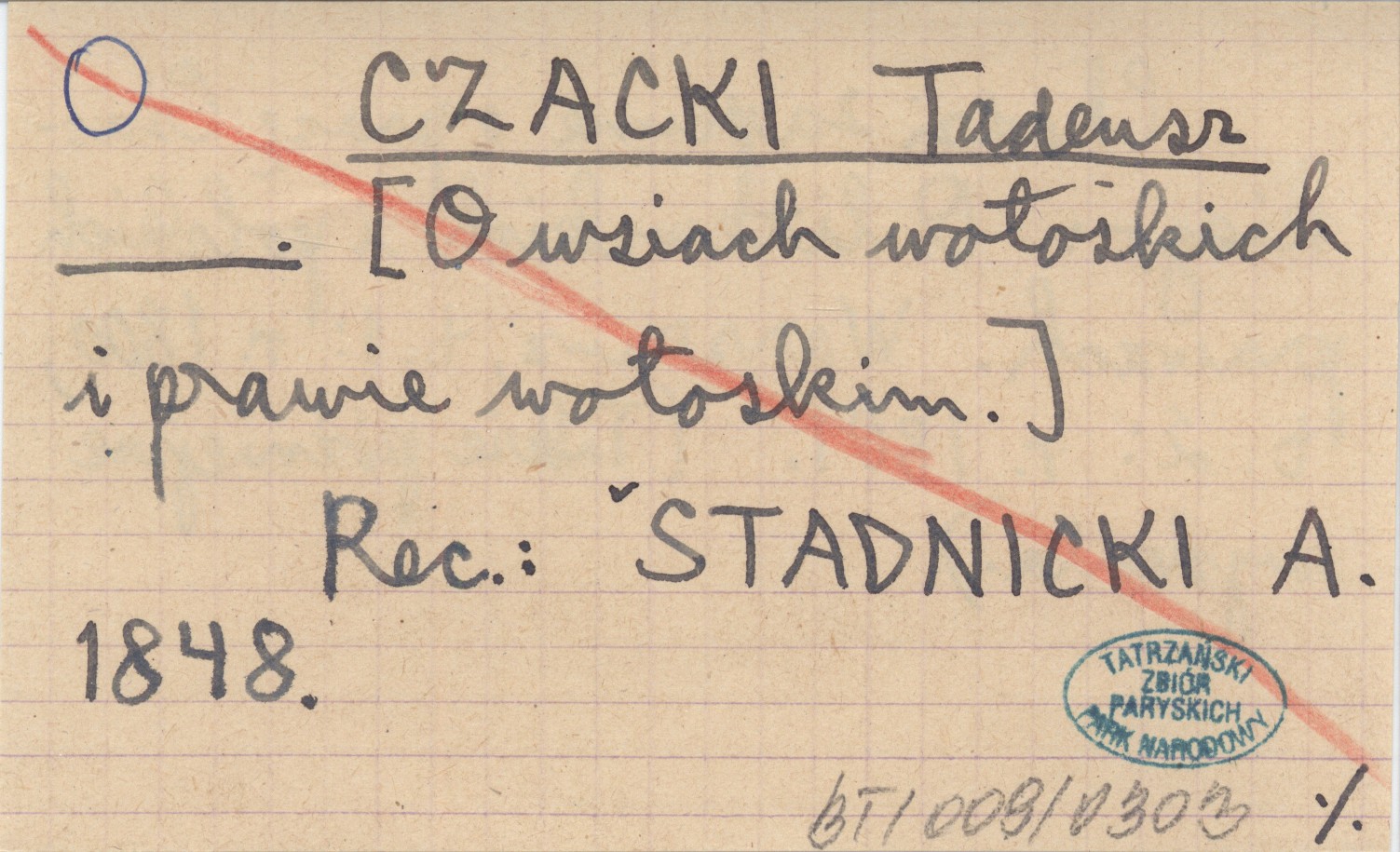 , Chodzi zapewne o pracę Czackiego: O litweskich i polskich prawach. Warszawa, t. 1, r. 1800; t. 2, r. 1801. (Także późniejsze wydania). REC: STADNICKI A. 1848.