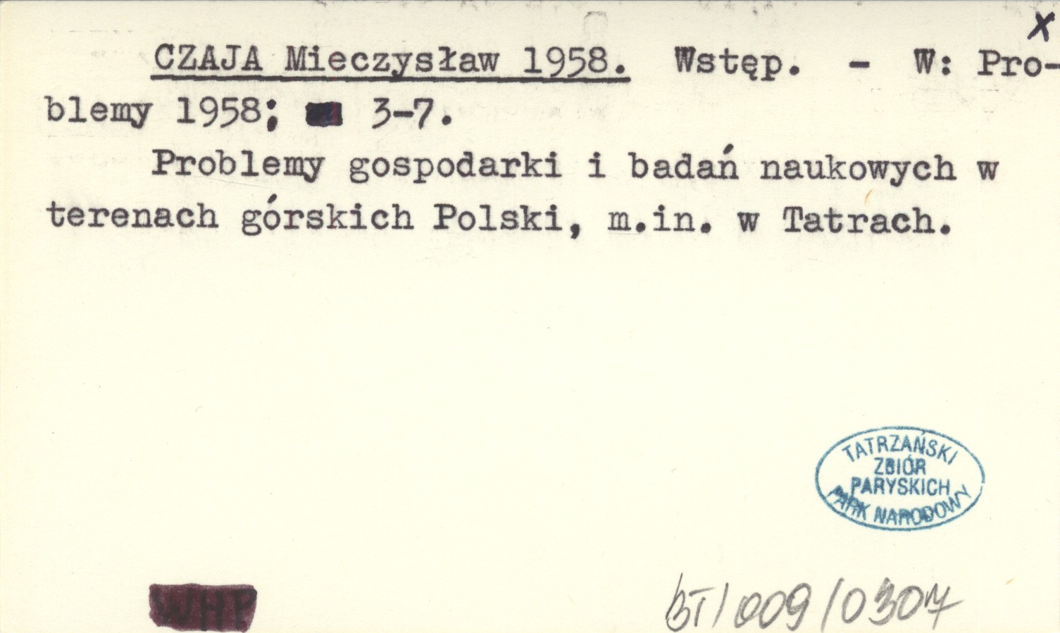 Problemy 1958: 3-7. , Problemy gospodarki i badań naukowych w terenach górskich Polski, m. in. w Tatrach.