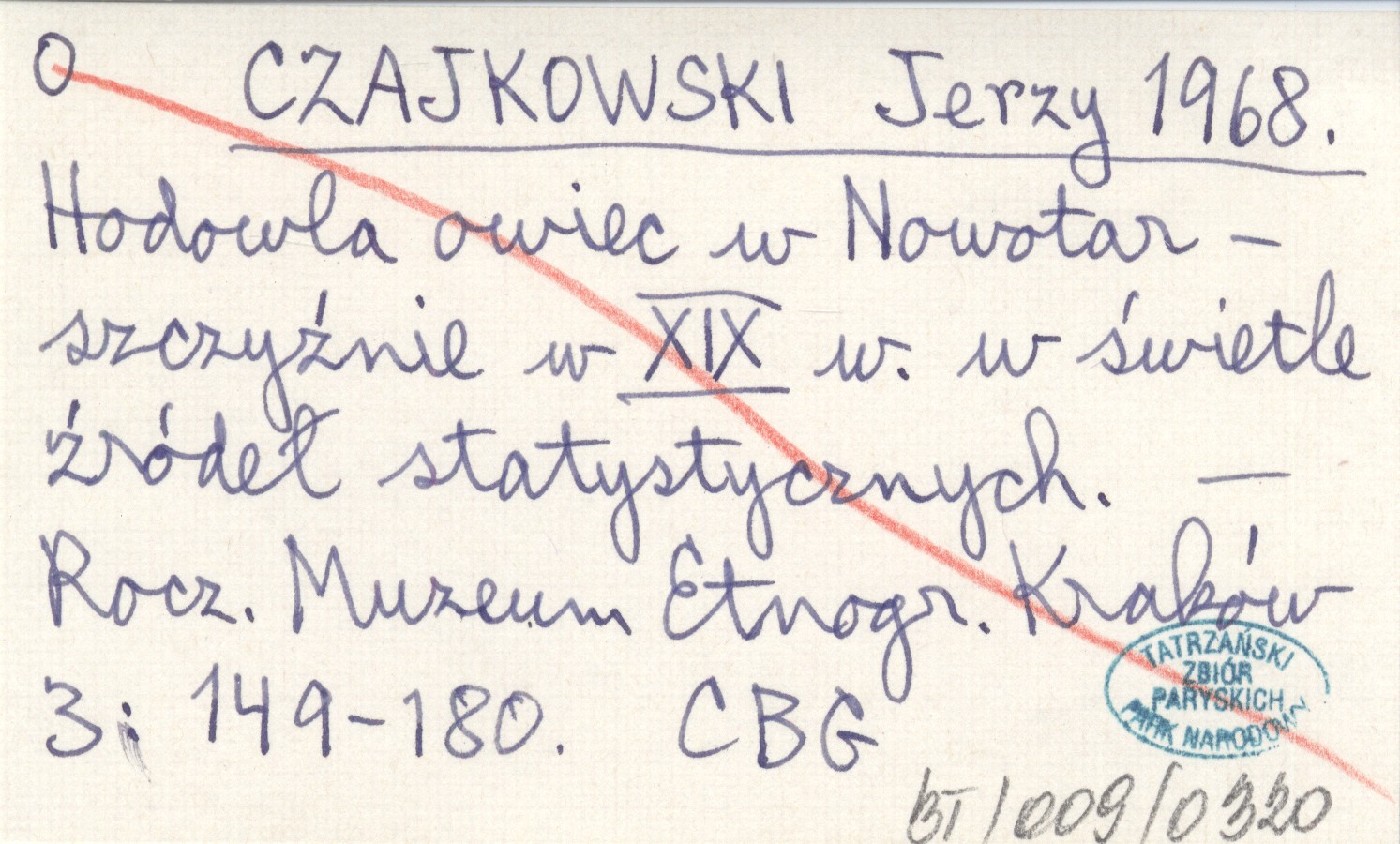 CZAJKOWSKI Jerzy 1968 Hodowla owiec w Nowotarszczyźnie w XIX w. w świetle źródeł statystycznych.