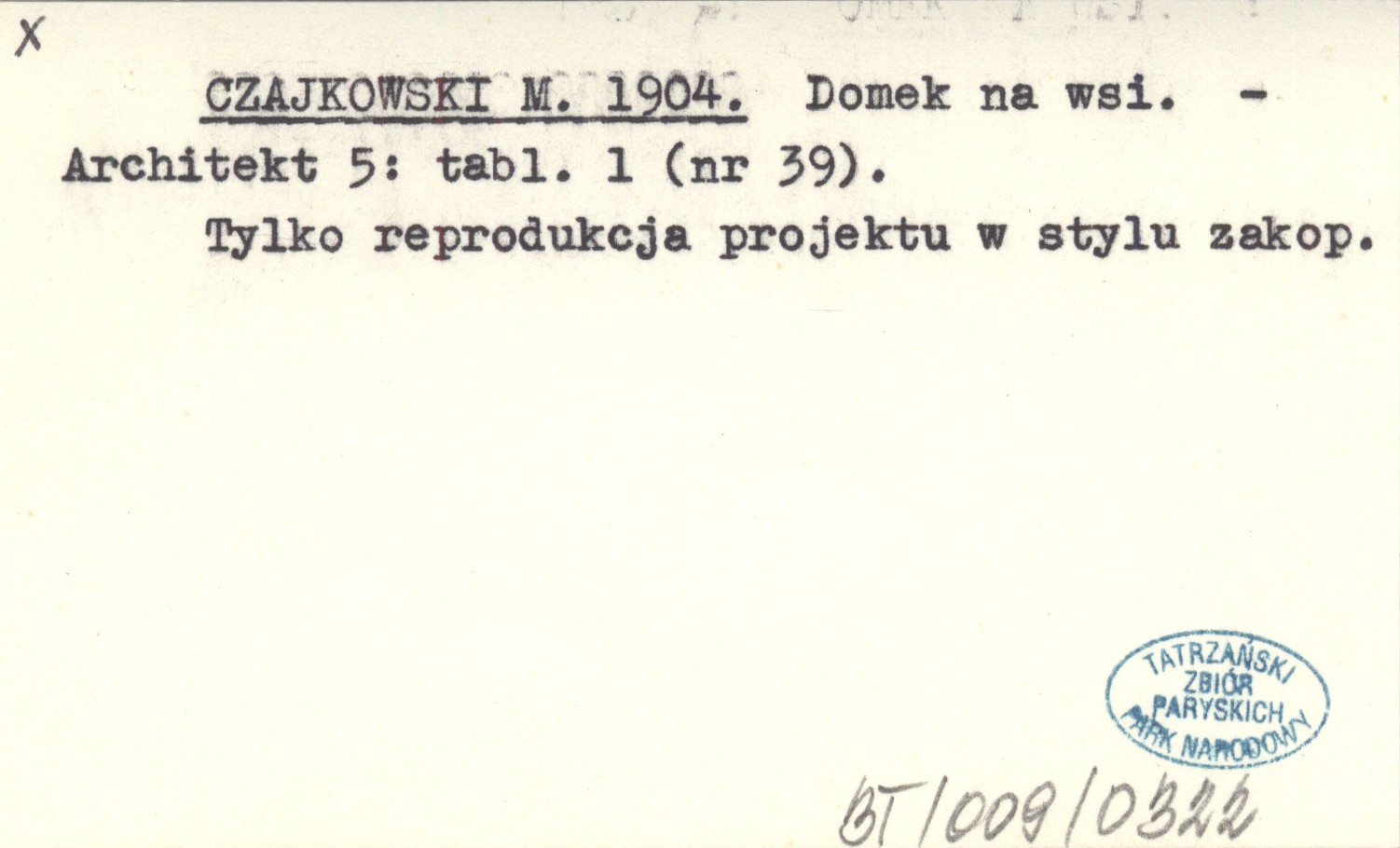 Architekt, 5: 1 k. (nr 39). Tylko reprodukcja projektu w stylu zakopiańskim.