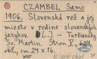 CZAMBEL Samo 1906 Slovenská reč a jej miesto v rodine slovanských jazykov. [...].