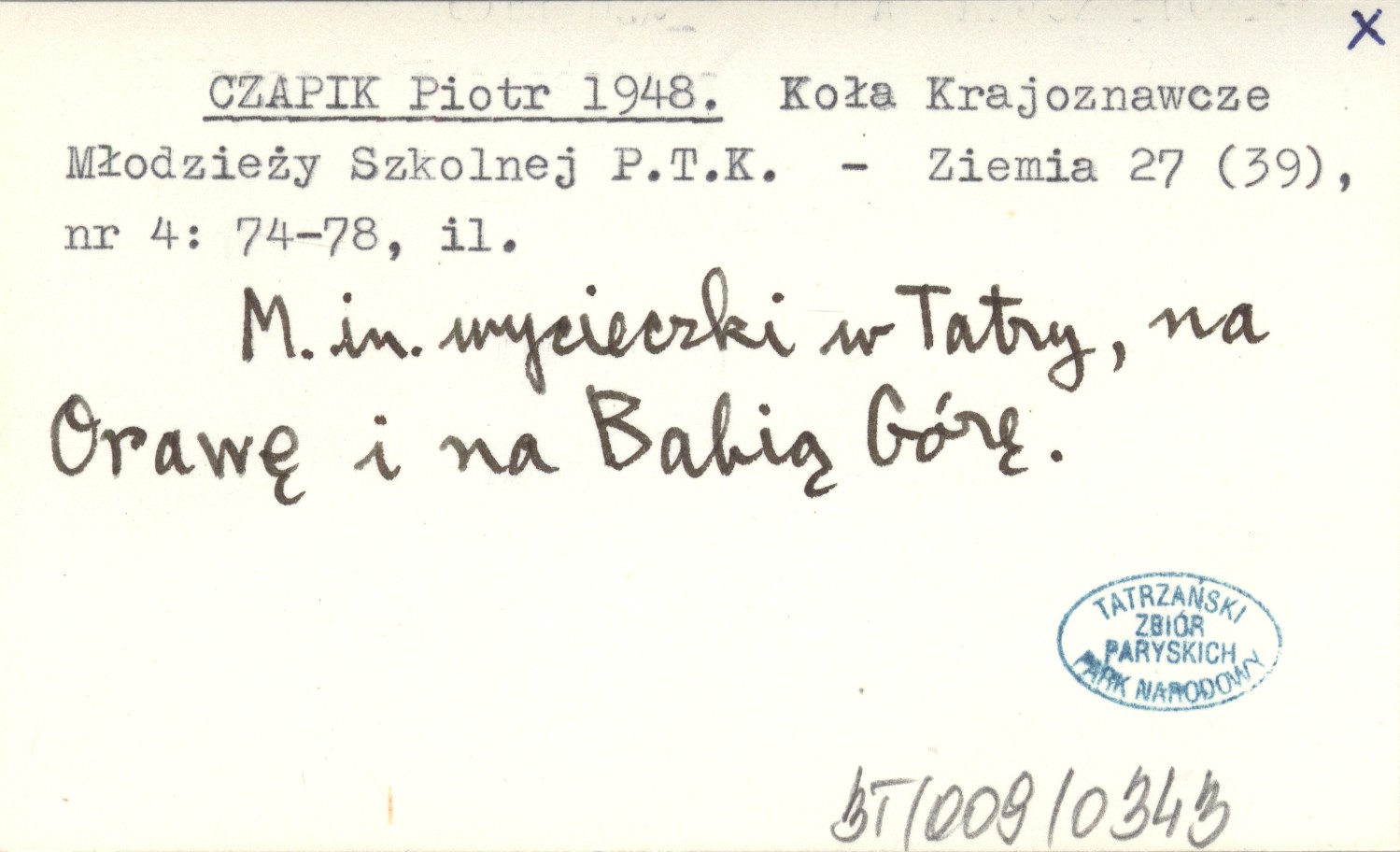 CZAPIK Piotr 1948 Koła Krajoznawcze Młodzieży Szkolnej P.T.K.