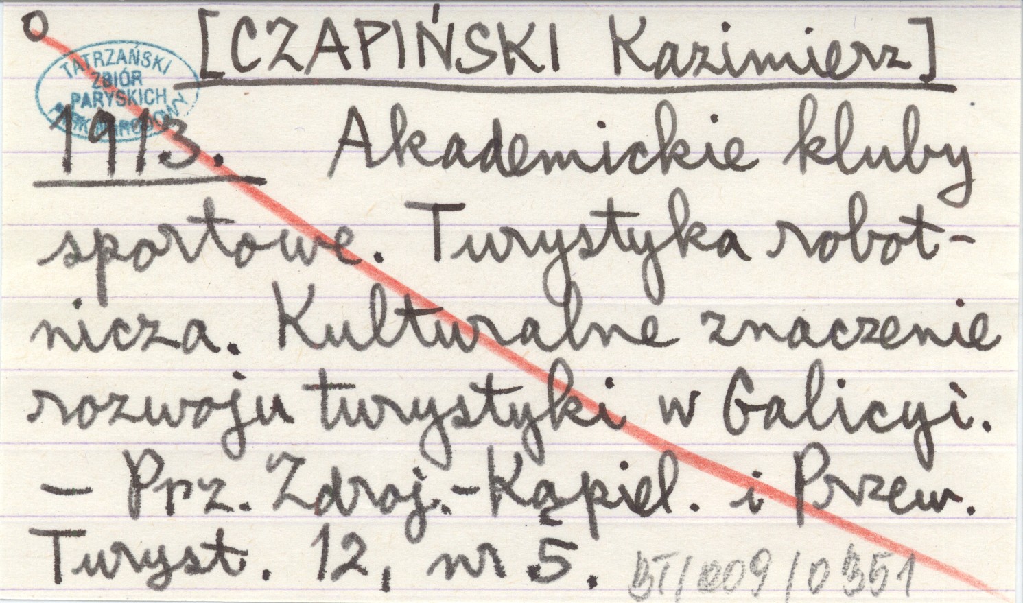 [CZAPIŃSKI Kazimierz] 1913 Akademickie kluby sportowe. Turystyka robotnicza. Kulturalne znaczenie rozwoju turystyki w Galicyi.