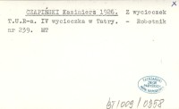 CZAPIŃSKI Kazimierz 1926 a Z wycieczek TUR. IV wycieczka w Tatry.