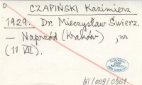 CZAPIŃSKI Kazimierz 1929 Dr. Mieczysław Świerz.