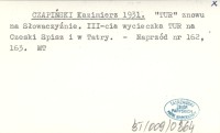 CZAPIŃSKI Kazimierz 1926 Z wycieczek T.U.R-a. IV wycieczka w Tatry.