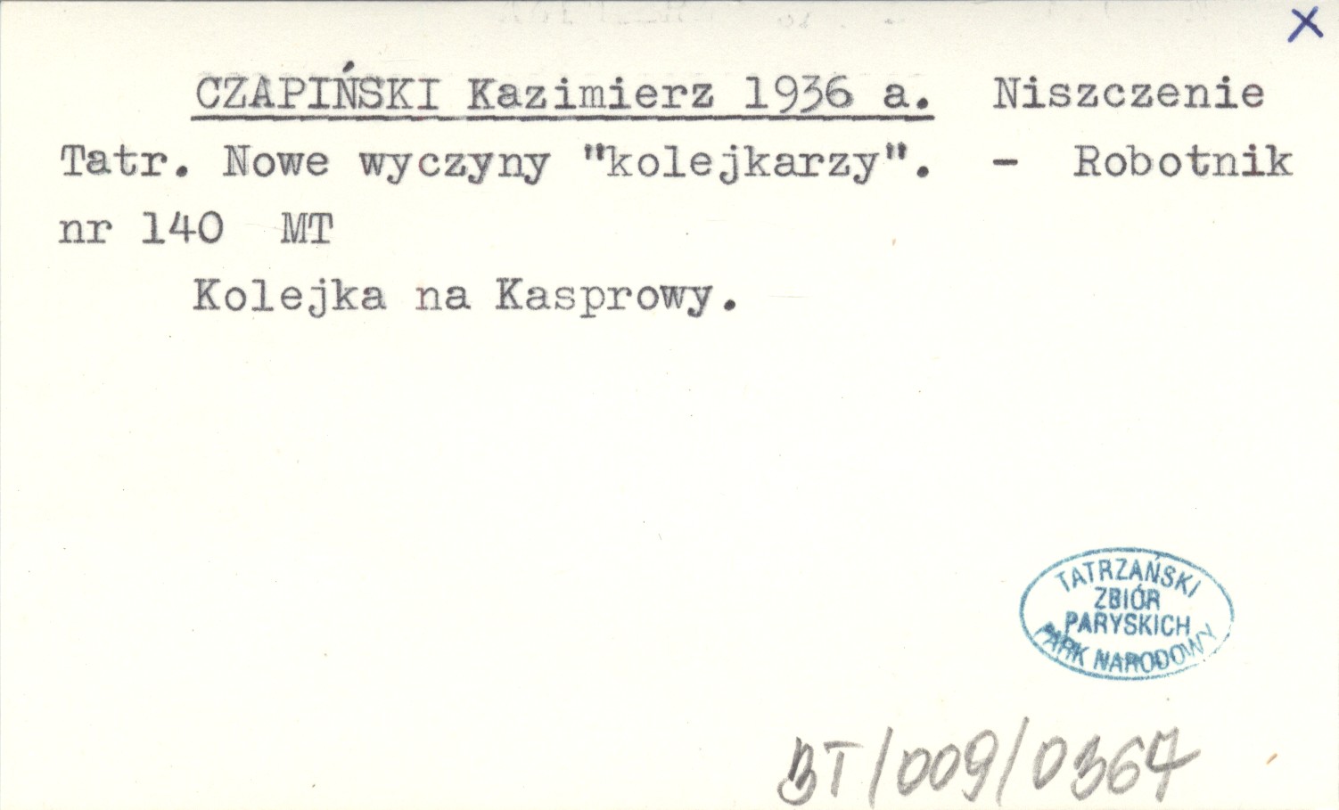 CZAPIŃSKI Kazimierz 1936 a Niszczenie Tatr. Nowe wyczyny "kolejkarzy".