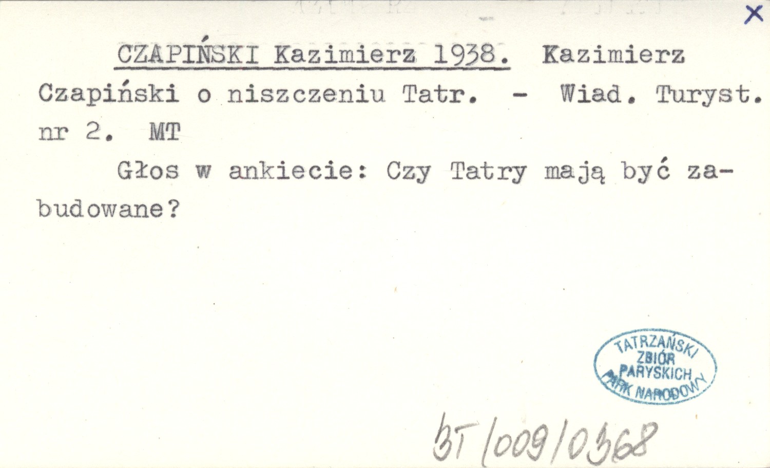 CZAPIŃSKI Kazimierz 1938 Kazimierz Czapiński o niszczeniu Tatr.