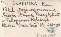 CZAPLICKA M. 1964 Moje wspomnienia. Szkoła Domowej Pracy Kobiet w Zakopanem-Kuźnicach.