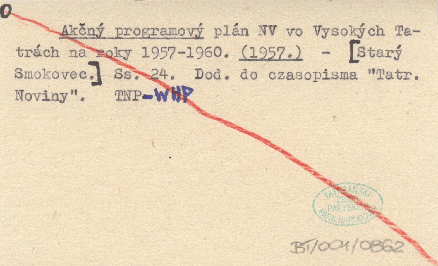 Akènę programovę plán NV vo Vysokęch Tatrách na roky 1957-1960. 1957