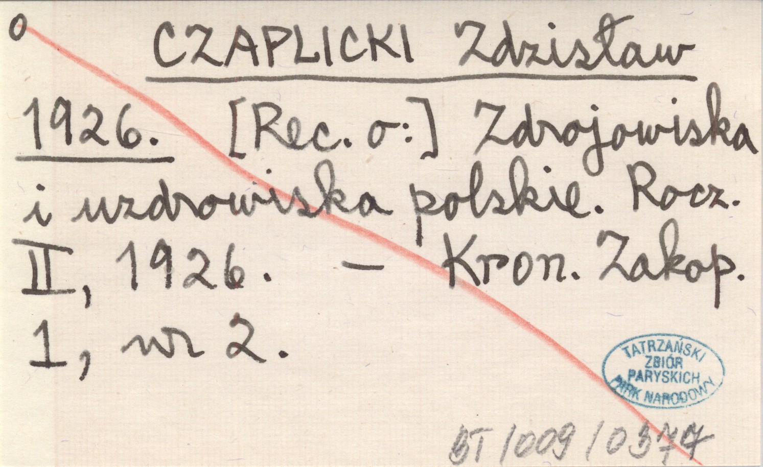 CZAPLICKI Zdzisław 1926 [Rec. o:] Zdrojowiska i uzdrowiska polskie. Rocz. II, 1926.