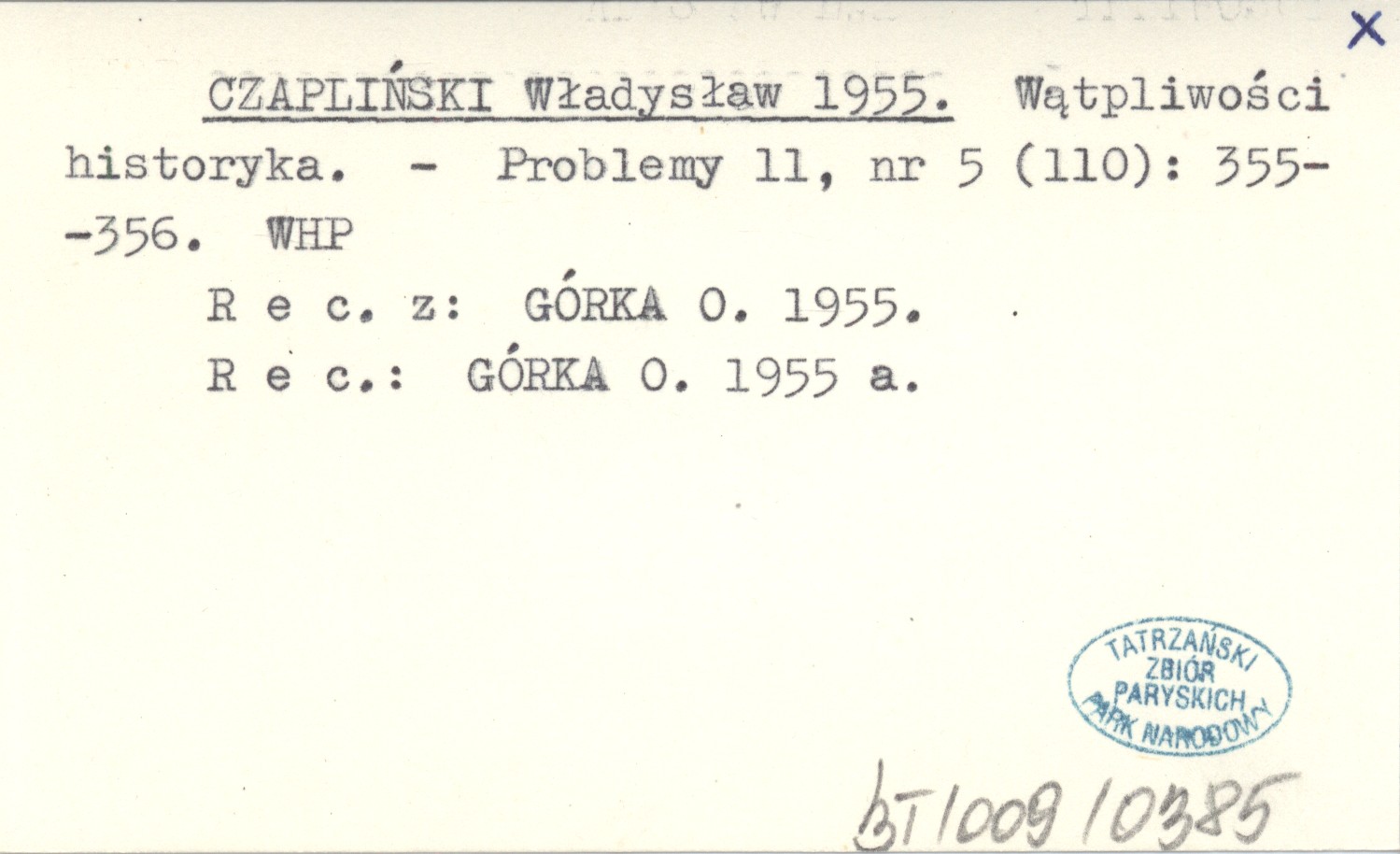 Problemy, 11, nr 5 (110): 355-356. REC: GÓRKA O. 1955 ; GÓRKA O. 1955 a
