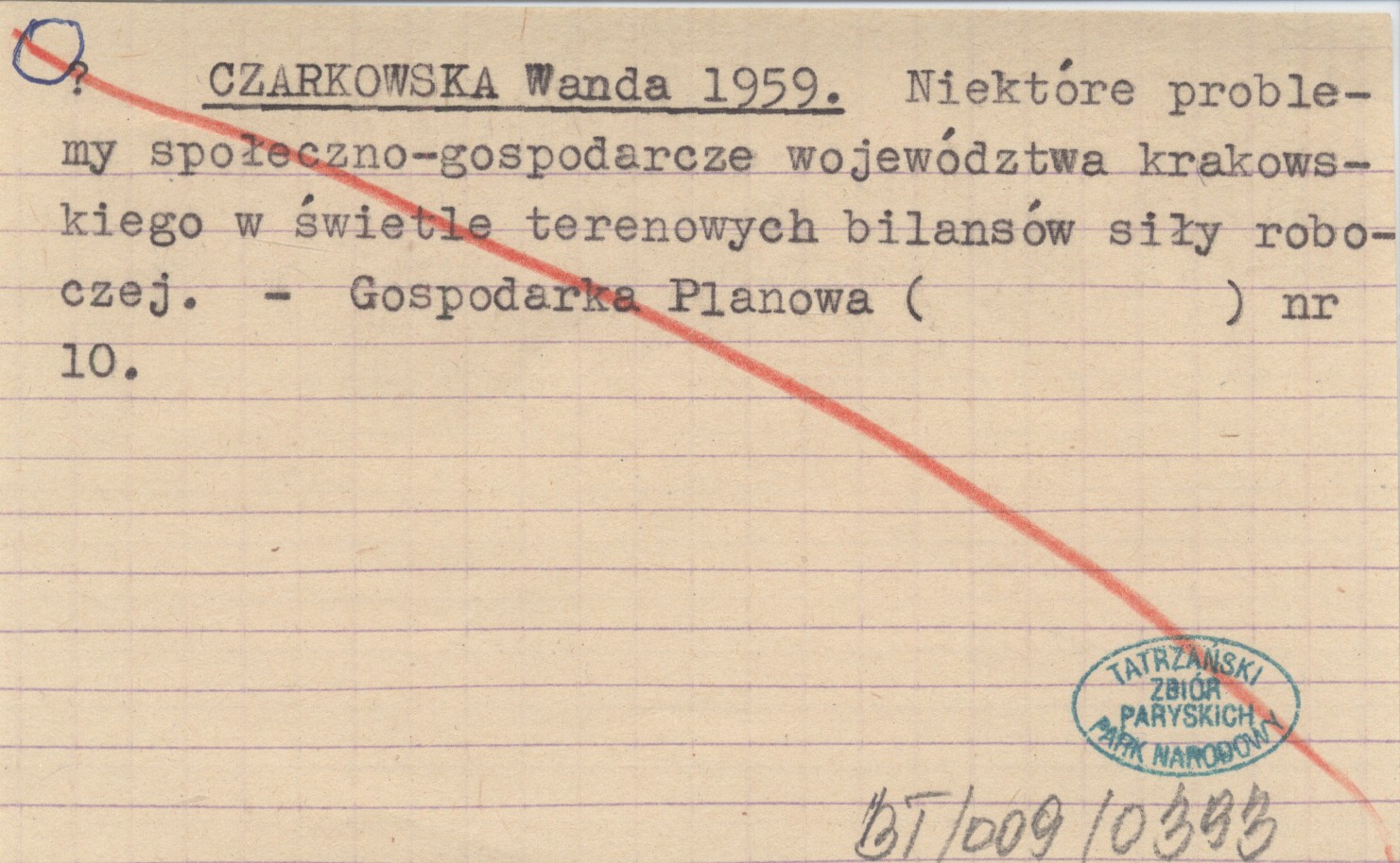 CZARKOWSKA Wanda 1959 Niektóre problemy społeczno-gospodarcze województwa krakowskiego w świetle terenowych bilansów siły roboczej.