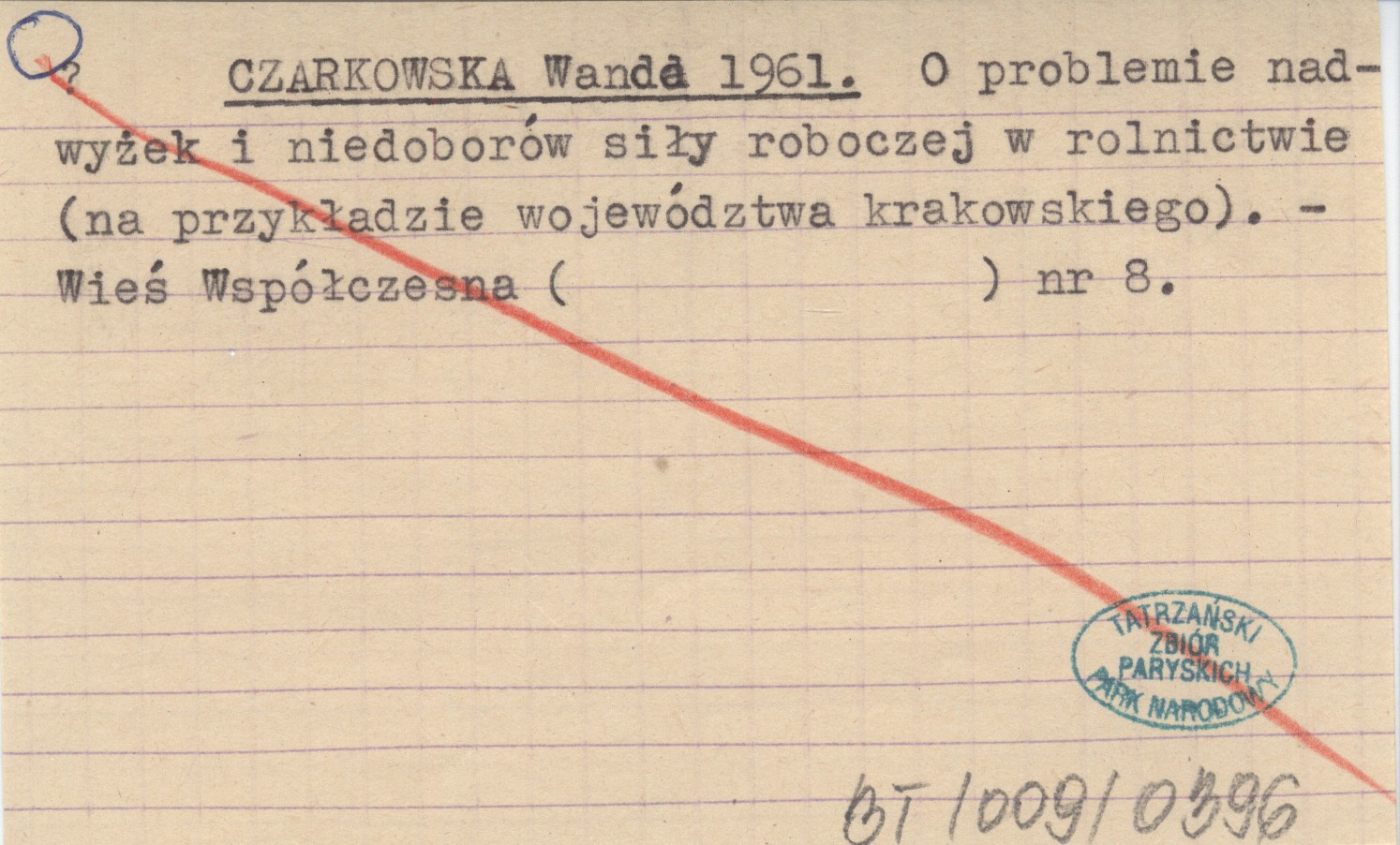 CZARKOWSKA Wanda 1961 O problemie nadwyżek i niedoborów siły roboczej w rolnictwie (na przykładzie województwa krakowskiego).