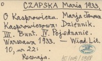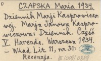 CZAPSKA Maria 1934 Dziennik Marji Kasprowiczowej. Marja Janowa Kasprowiczowa: Dziennik. Część V. Harenda. Warszawa 1934.