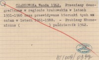 CZARKOWSKA Wanda 1959 Niektóre problemy społeczno-gospodarcze województwa krakowskiego w świetle terenowych bilansów siły roboczej.