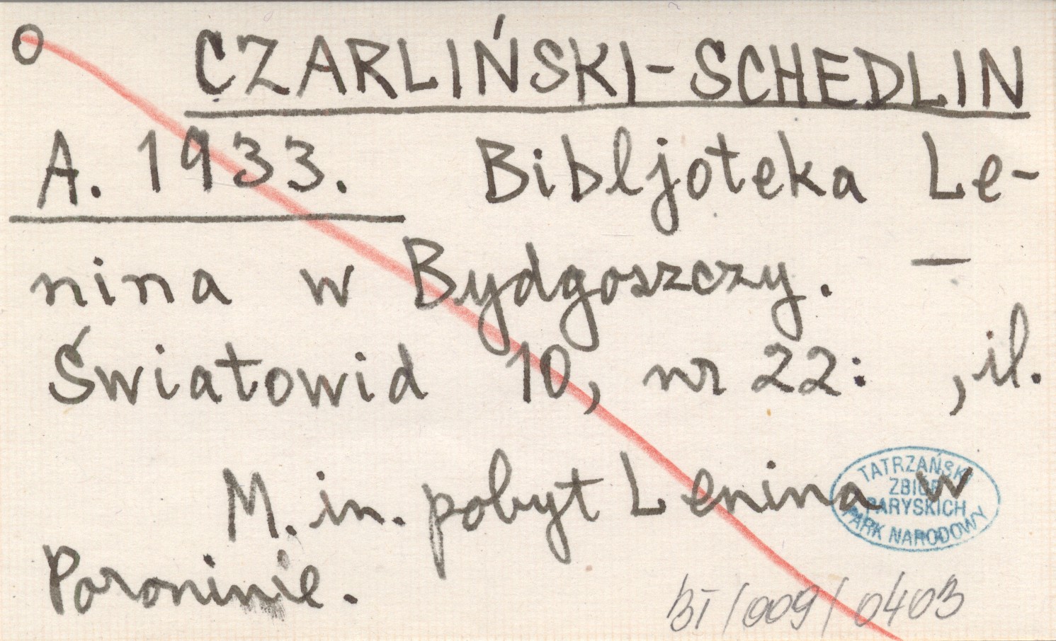 CZARLIŃSKI-SCHEDLIN A. 1933 Bibljoteka Lenina w Bydgoszczy.
